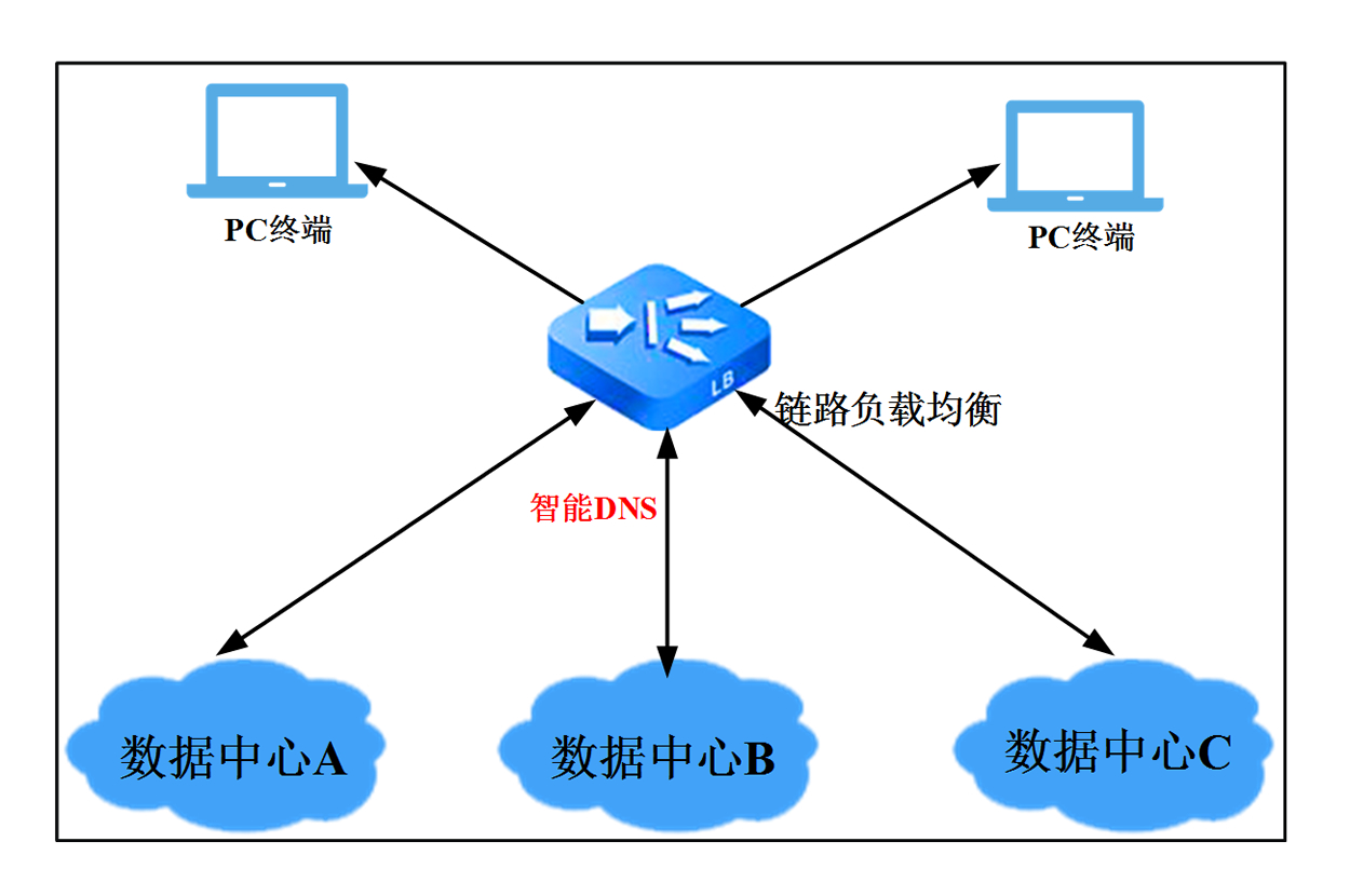 以統一(yī)的(de)域名方式訪問(wèn)互聯網業(yè)務,本地(dì)負載将各業(yè)務區(qū)的(de)故障情況和(hé)負荷情況上(shàng)報(bào≥)給全局負載,全局負載設備之間(jiān)也(yě)會(huì)進行(xíng)實時(shí)交互,綜合預設策略、實時(shí)狀态等因素,為(w‌èi)用(yòng)戶返回最優數(shù)據中心的(de)IP地(dì)址,保證用(yòng)戶快(kuài)速穩定的§(de)訪問(wèn),合理(lǐ)分(fēn)擔數(shù)據中心的(de)業(yè)務壓力。