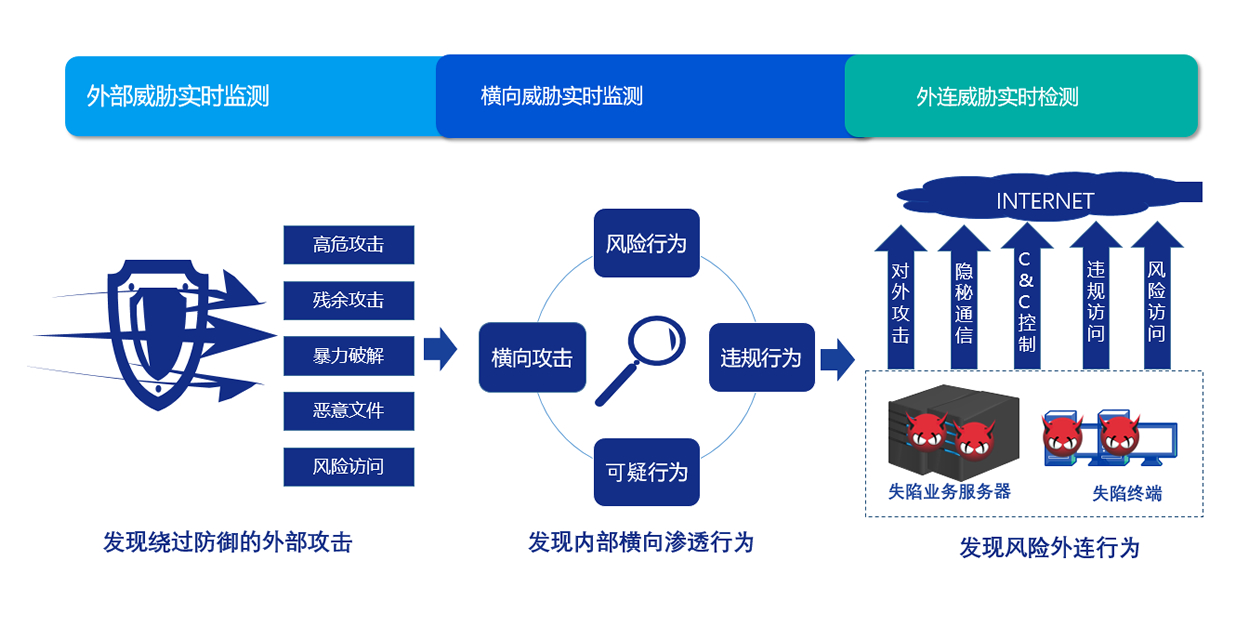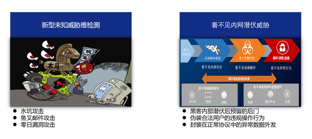 看(kàn)不(bù)見(jiàn)的(de)安全威脅: 靜(jìng)态特征檢測難以應對(duì)新型威↕脅,缺乏對(duì)內(nèi)網攻擊行(xíng)為(wèi)持續檢測手段