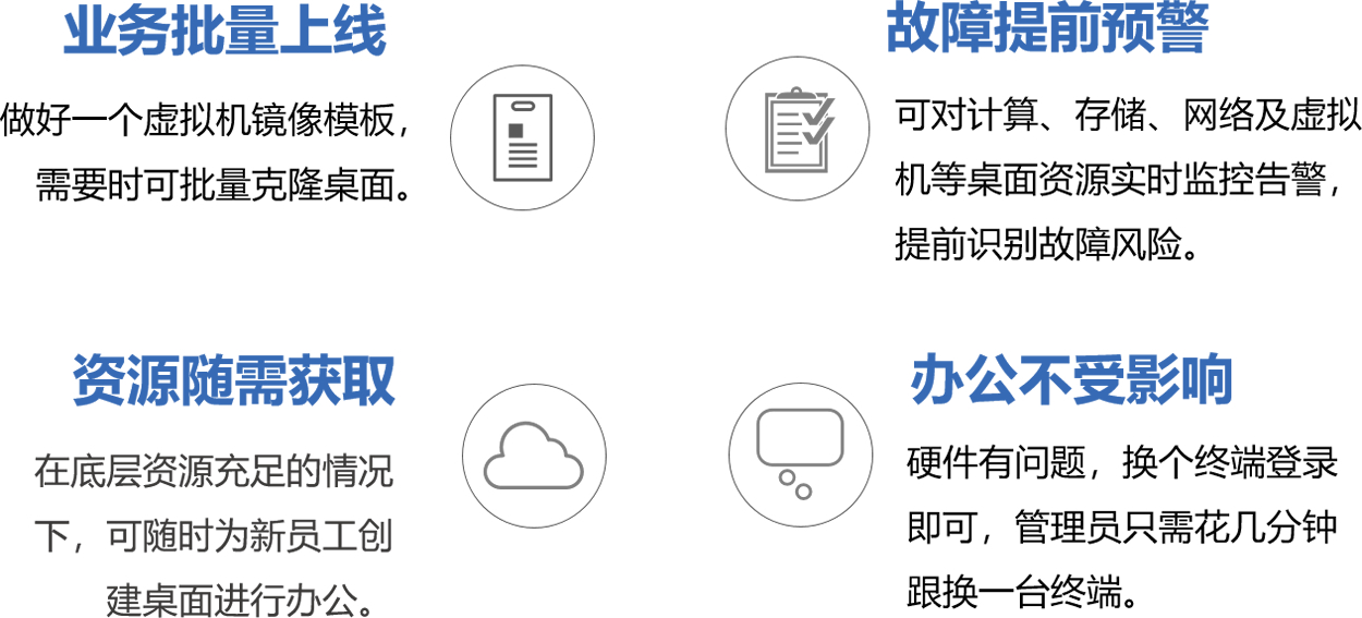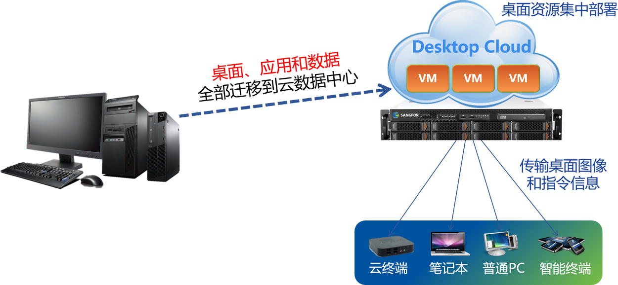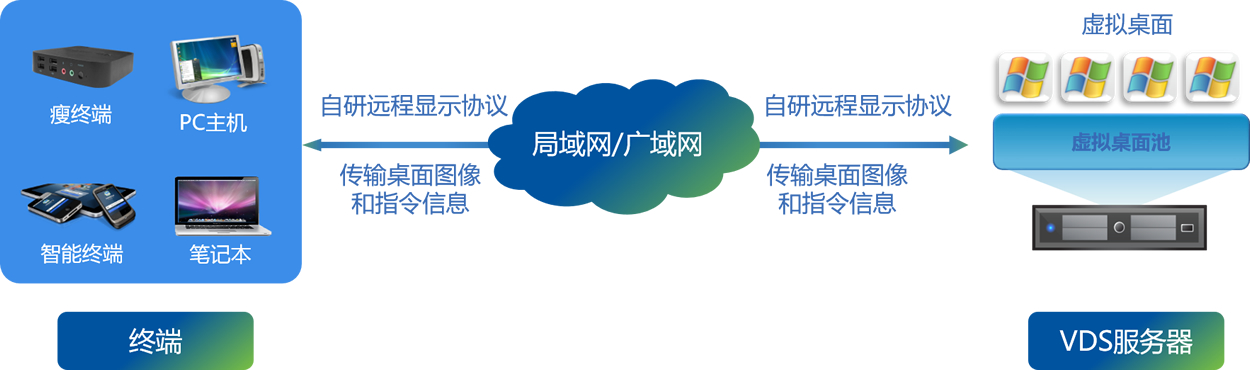 桌面雲的(de)整體(tǐ)架構圖,分(fēn)為(wèi)3個(gè)部分(fēn),用(yòng)戶端、數(shù)據∞中心端、網絡接入端。用(yòng)戶端支持不(bù)同類型的(de)瘦終端接入,滿足不(bù)同的(de)應用(yòng)場(chǎng)景。