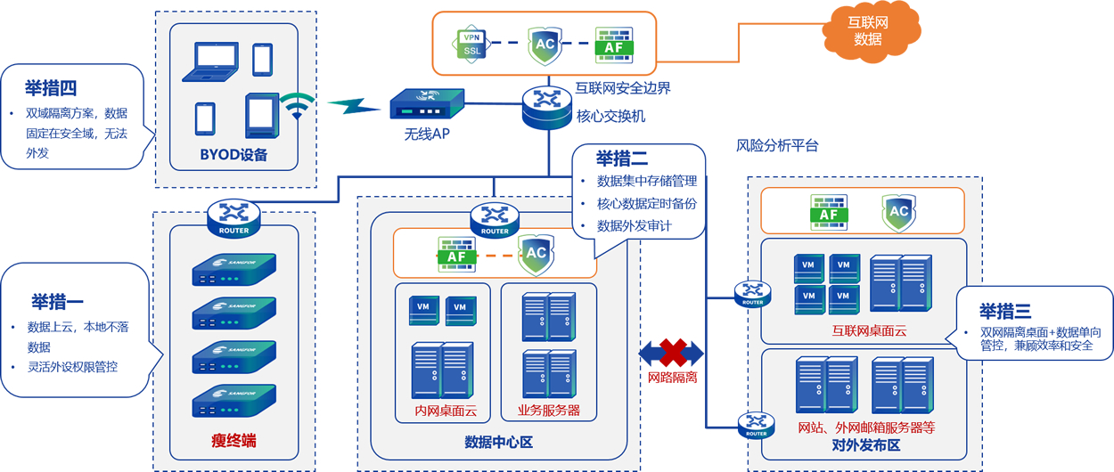 6.數(shù)據安全設計(jì)臨時(shí)權限、外(wài)發審計(jì)、應用(yòng)管控、USB管控、屏幕水(shuǐ)印、防•截屏、分(fēn)布式防火(huǒ)牆、可(kě)視(shì)報(bào)表……