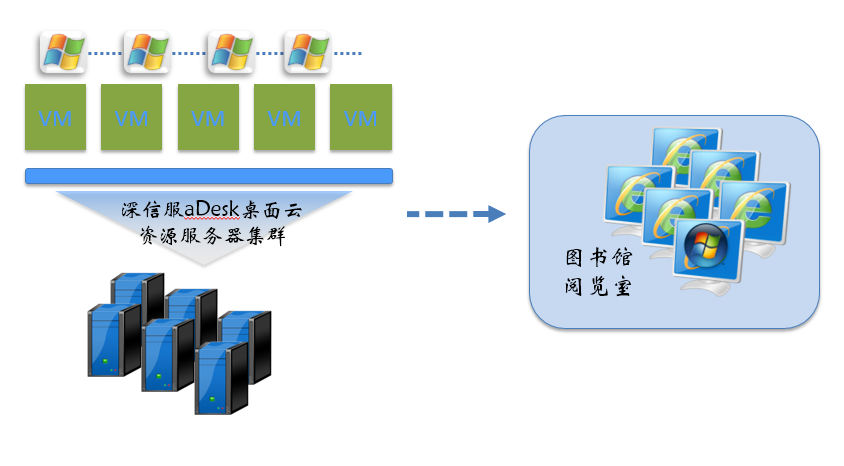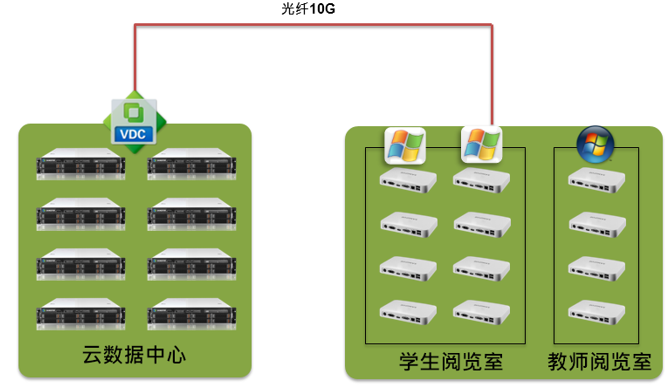 針對(duì)用(yòng)戶現(xiàn)有(yǒu)的(de)問(wèβn)題和(hé)需求,深信服雲桌面為(wèi)用(yòng)戶提供了(le)高(gāo)性價比和(hé)高(gāo)附加值的(de)解決方案。整體(tǐ)方案采用(yò ng)深信服桌面雲一(yī)體(tǐ)機(jī)VDS-G-H550,深信服桌面雲系統aDesk、将傳統PC應用(yòng)轉↕化(huà)成虛拟機(jī)上(shàng),托管在數(shù)據中心。客戶使用(yòng)節能(néng)、無噪音(yīn)、小(xiǎo)巧的(de)超雲雲終端設備替≠代傳統PC,打造高(gāo)效的(de)數(shù)字化(huà)校(xiào)園。